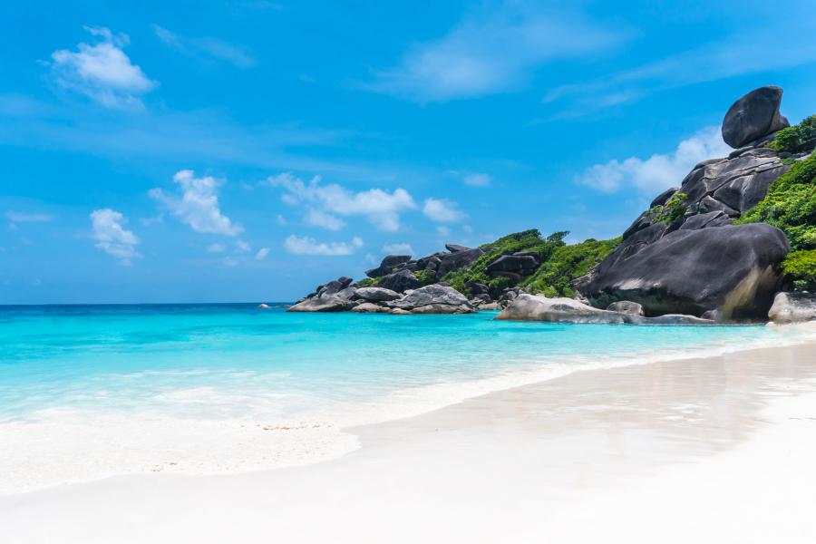 The Similan Islands are known for long stretches of fine white sand and clear, blue‑green water that makes both swimming and shoreline snorkeling especially inviting. On permitted beaches, visitors can relax between water activities, keeping an eye on the changing colours of the sea as light shifts through the day.